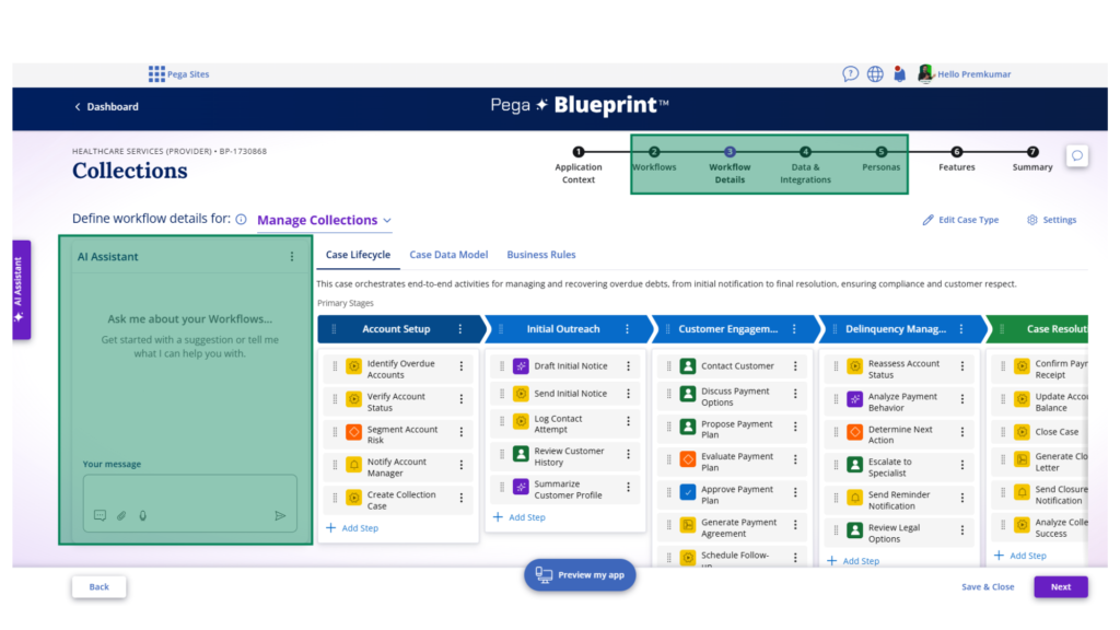 In Pega, vibe coding is more about enabling business + IT collaboration at the start of the project, using Blueprint, and shaping the business process using natural language.